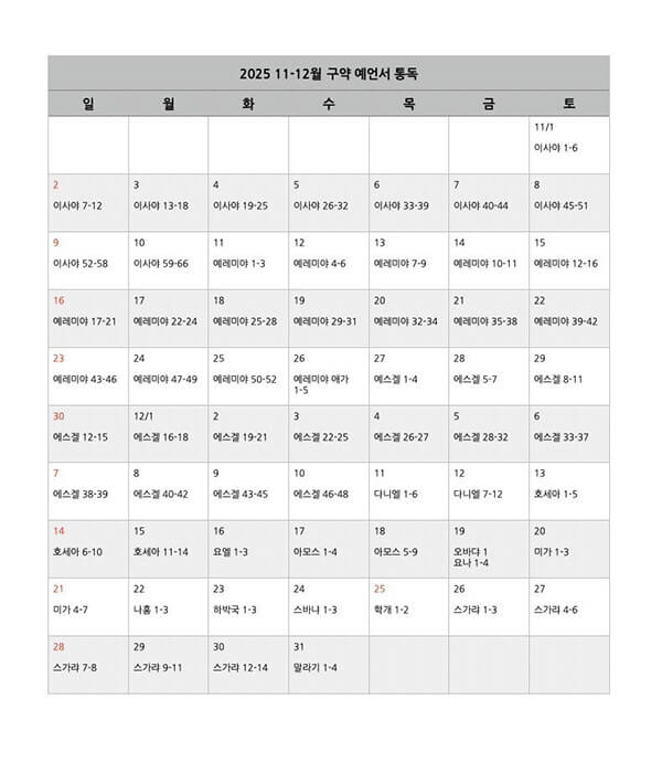 2025년을 가장 잘 마무리하는 방법을 소개합니다. 말씀을 읽으며 하나님을 기대하는 것입니다. 구약선지서를 통해 하나님이 하실 일들을 기대하면 좋겠습니다. 나의 생각보다 크시고 아름다우신 주님의 말씀에 여러분을 초대합니다. 함께 하시기 원하신다면 언제든 제게 말씀 주세요.